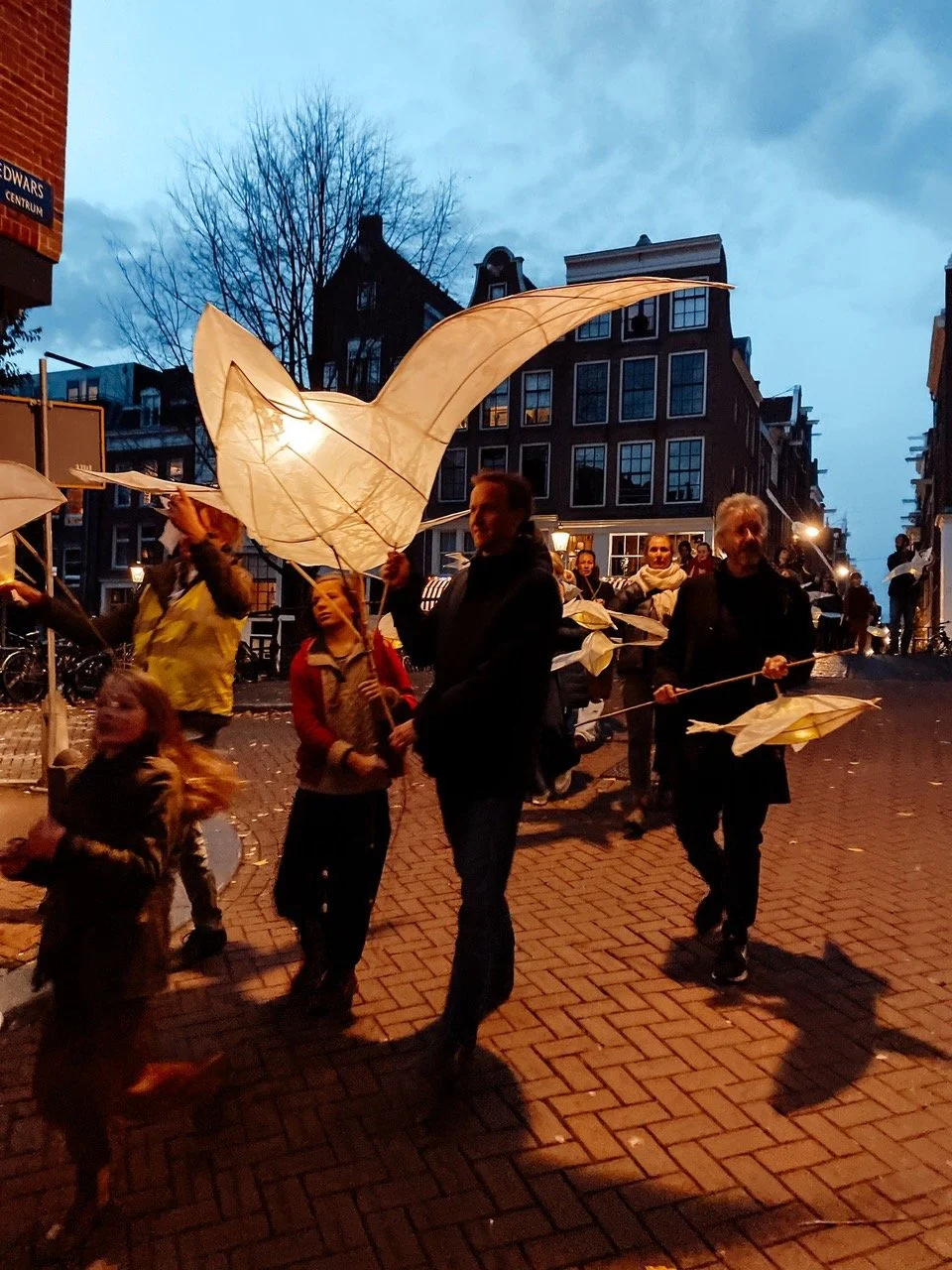 De Jordaan is prachtig. Met de verlichte vogels vieren we dat we samen de Jordaan maken. Buurtbewoners maakten lichtsculpturen in de Roosenkamer, de buurtplek van woongemeenschap het Roosenhofje. Onder leiding van kunstenaar Jurrian van den Haak maakte iedereen een vogel. Er volgde een parade en nu hangen ze boven de Passeerdersgracht!